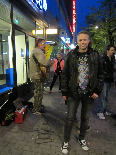Yöllä kuitenkin ennen nukkumaanmenoa jäätiin fiilistelemään hetkeksi Kaihon katusoittoa Hämeenkadulle. Kaiho soittaa aina samalla paikalla öisin ja on saavuttanu pienimuotoista kulttistatusta täällä Tampereella. Itse en ole kuin kerran aiemmin jääny kuuntelemaan esitystä, nuoret sällit yrittivät toivoa biisejä mutta eihän se niin mene vaan hän laulaa omia biisejään sekä kehittelee uusia ympärillä tapahtuvasta asioista.