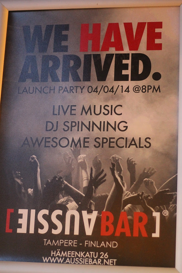 Aivan tällä konseptilla ei täällä kuitenkaan vähään aikaan iltapaikkaa ole ollutkaan, kun Memphis samasta liiketilasta jo vuosia sitten lopetti. Tampereella on totuttu siihen, että ruoka syödään toisessa paikassa ja iltaa lähdetään viettämään toisaalle. Pientä hiomista ehkä on vielä syytä tehdä, mutta ihan kelpo arvosanoin toivotan Aussie Barin tervetulleeksi. En tiedä mistä johtui, ja tilanne voi tasoittua kyllä ajan saatossa, mutta mulla oli koko ajan sellainen fiilis että olisin ulkomailla enkä Tampereella. Tuskin se vain siitä yksin johtui että baarista kaikki tilataan englanniksi, sillä henkilökunta on oikeasti australialaista. Sen tiedän kuitenkin jo nyt, että tästä tulee muodostumaan yksi niistä harvoista juottoloista missä istun mielelläni iltaa.